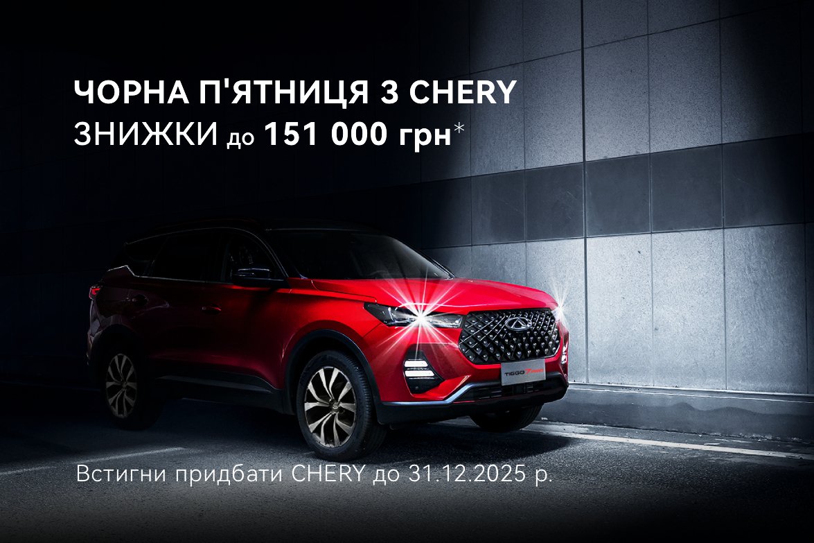 Не зволікайте — хоча ексклюзивні умови до Чорної п’ятниці діють до 31.12.2025 року, тож саме зараз найкращий момент обрати свій новий CHERY за максимально вигідною ціною!